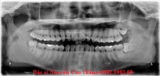 Phim XQ thể hiện bệnh nhân này có vấn đề về hướng mọc của răng trên cả 4 răng số 8 ở 4 góc hàm