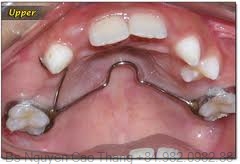 Ngoài ra, để giải quyết tạm thời đặc điểm tháo lắp, đối với vùng răng trước có thể đặt dạng giữ khoảng cố định. Tuy nhiên, loại này dễ bong khâu, khó vệ sinh, mất khoáng men răng dưới khâu.