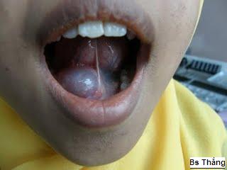 Nang nhầy thường phát triển từ sàn miệng do tắc tuyến nước bọt phụ hoặc đôi khi là tuyến dưới lưỡi. Người ta hay dùng thuật ngữ "nang nhái" để miêu tả nang nhầy bởi vì nang nhìn trong suốt, và tương đối lớn giống với bụng của con nhái. Nang thường nằm hẳn về một bên của phanh lưỡi. Nang thường tương đối lớn, làm ảnh đến động tác nuốt và thở. Đôi khi nang tự vỡ, để thoát ra một chất dịch nhầy quánh.