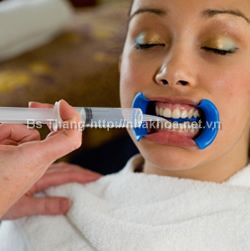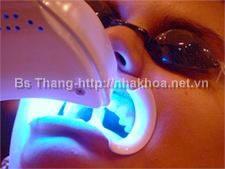Tất cả các răng được chiếu ánh sáng laser, ánh sáng laser có khả năng kích hoạt tăng tác dụng khử màu của thuốc tẩy răng. Thời gian bệnh nhân ngồi trên ghế lâu hay mau tùy thuộc vào mức độ sẫm màu của răng, thường từ 30 phút đến 1 giờ. Đây là phương pháp làm trắng răng hiệu quả nhất, bệnh nhân chỉ cần đến một lần nhưng chi phí cao hơn các phương pháp làm trắng răng khác.