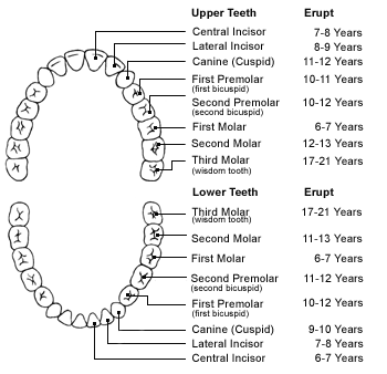 Hàm răng vĩnh viễn với thời điểm mọc các răng vĩnh viễn