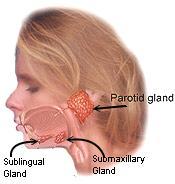 - Tuyến mang tai: nằm ở góc xương hàm ở 2 bên, là tuyến nước bọt lớn nhất.